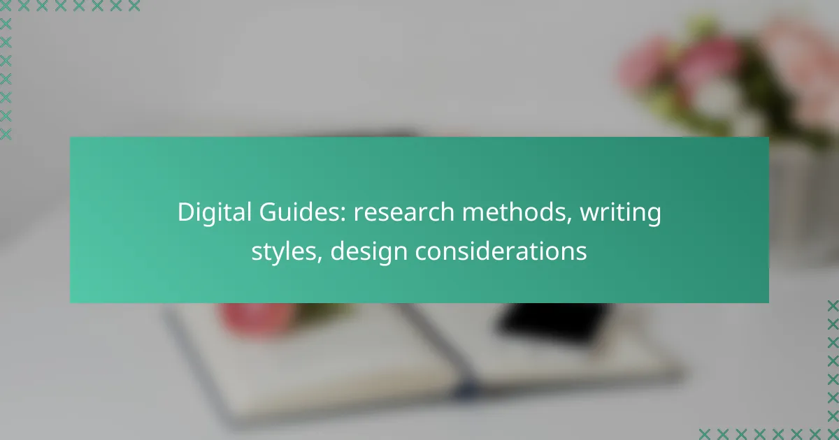 Creating effective digital guides requires a thoughtful approach to research methods, writing styles, and design considerations. By employing qualitative, quantitative, or mixed-method research, you can gain valuable insights tailored to your audience’s needs. Selecting the appropriate writing style enhances clarity and engagement, while key design elements ensure usability and accessibility across devices. Together, these components contribute to the overall effectiveness of your digital guides.
