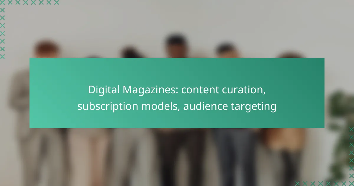 Digital magazines thrive on effective content curation, which involves selecting engaging material that aligns with audience preferences and current trends. By implementing diverse subscription models and leveraging data-driven strategies, publishers can enhance audience targeting, ultimately driving engagement and boosting revenue.
