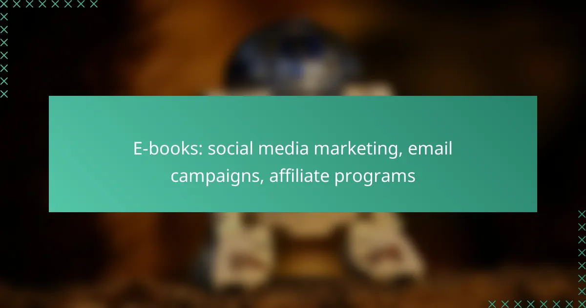 E-books serve as a powerful tool for social media marketing, offering valuable content that captivates audiences and drives engagement. By leveraging targeted email campaigns, businesses can effectively reach potential readers and boost conversion rates through personalized messaging. Additionally, affiliate programs provide an opportunity for individuals and companies to earn commissions by promoting e-books, creating a mutually beneficial relationship that expands reach and sales.