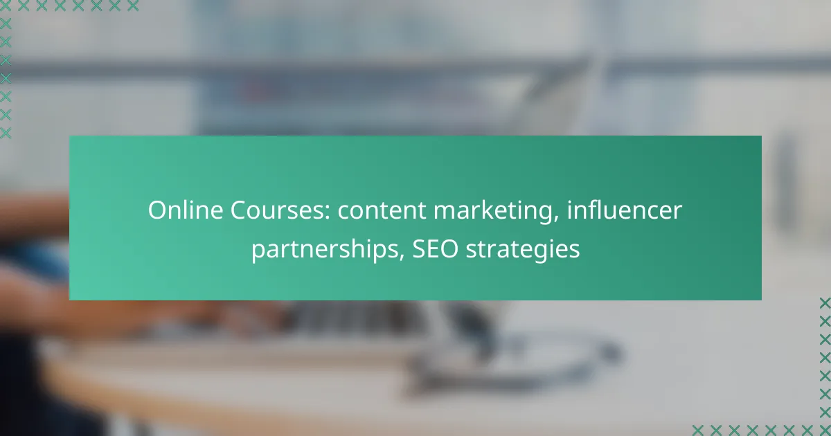 Online courses in content marketing, influencer partnerships, and SEO strategies are essential for anyone looking to enhance their digital presence. These courses equip learners with the skills to create impactful content, leverage influencer networks for greater reach, and implement effective SEO techniques to boost visibility and enrollment. By mastering these areas, individuals can significantly improve their marketing efforts and achieve their business goals.