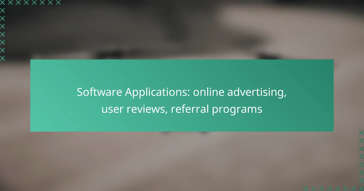 In today’s digital landscape, software applications play a vital role in enhancing online advertising, gathering user reviews, and implementing referral programs. By leveraging platforms like Google Ads and social media, businesses can effectively target audiences while user review sites such as Trustpilot and G2 provide valuable insights for consumers. Additionally, well-structured referral programs can drive engagement and conversions through clear communication and seamless user experiences.