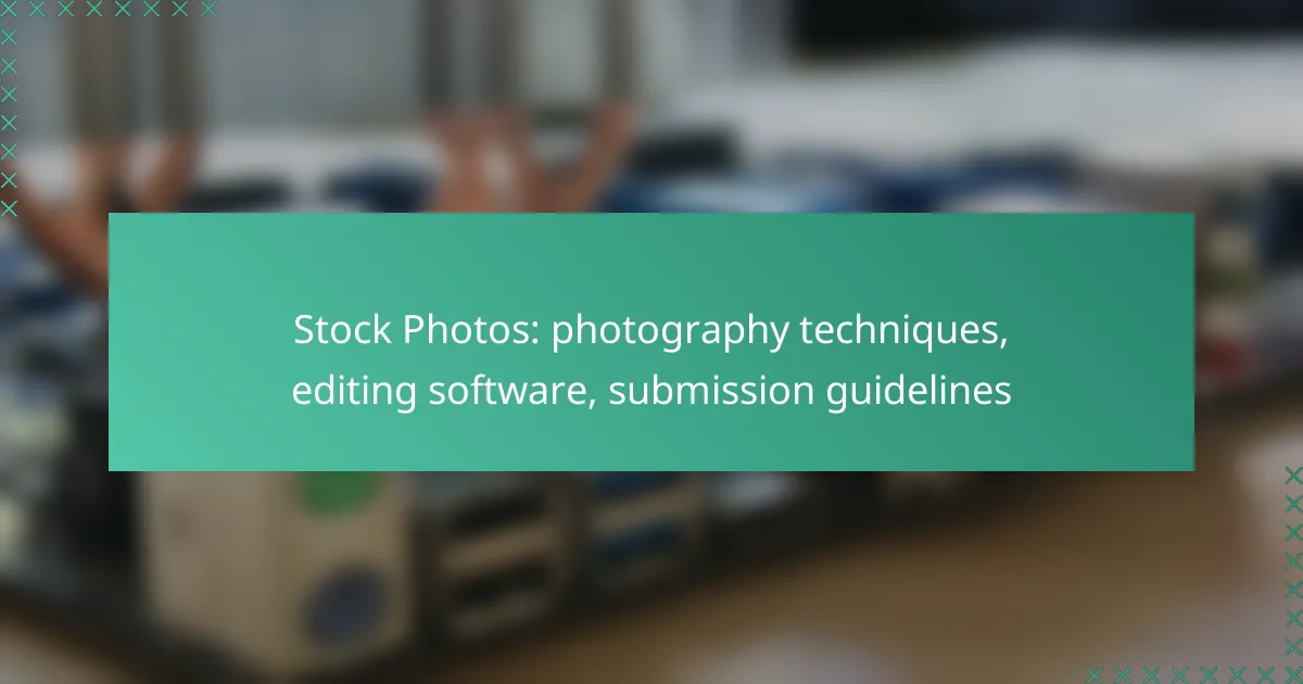 When selecting stock photos for digital products, it’s essential to understand licensing, ensure high image quality, and confirm the relevance to your target audience. Employing effective photography techniques, such as natural lighting and proper composition, can significantly enhance visual appeal. Additionally, utilizing the right editing software, like Adobe Lightroom or Photoshop, will help you refine your images to meet professional standards.