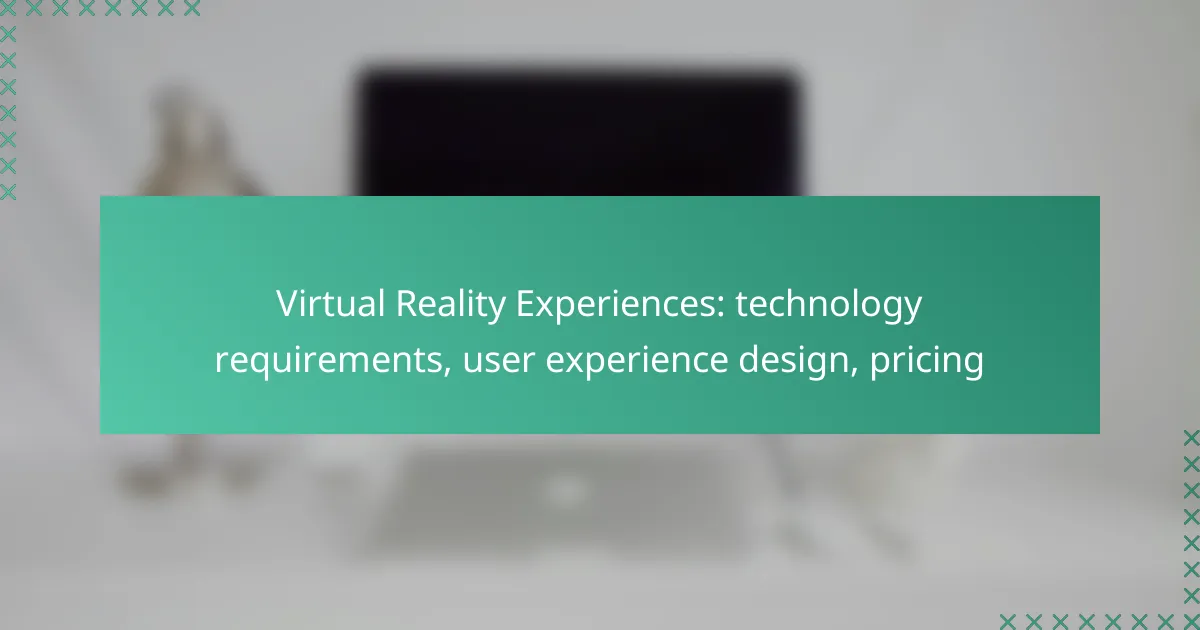 Virtual reality experiences require specific technology, including high-performance headsets and powerful gaming PCs, to ensure an immersive experience. Effective user experience design focuses on creating engaging environments that cater to user needs and facilitate intuitive interactions. Additionally, pricing for VR experiences can vary significantly, encompassing initial hardware investments and ongoing software costs.