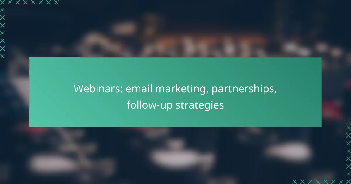 Webinars are a powerful tool for enhancing email marketing efforts, allowing businesses to engage directly with targeted audiences while delivering valuable content. By forming strategic partnerships, organizations can expand their reach and credibility, creating a more impactful experience for participants. Additionally, effective follow-up strategies, such as email drip campaigns and feedback surveys, can nurture leads and reinforce key messages, ultimately driving conversions.