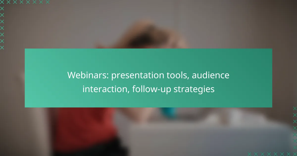 Webinars have become essential for effective communication and engagement, utilizing tools like Zoom and Microsoft Teams to enhance presentations. By incorporating interactive elements such as live polls and Q&A sessions, presenters can significantly boost audience participation. Additionally, implementing strategic follow-up methods ensures that the content resonates with attendees and fosters ongoing interest.